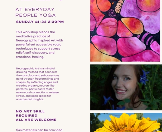 This workshop blends the meditative practice of Neurographic inspired Art with powerful yet accessible yogic techniques to support stress relief, self-discovery, and emotional healing.