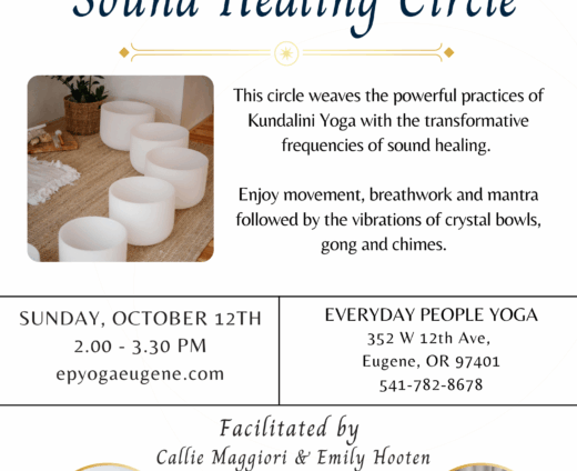 Join Callie and Emily on a journey into a space where movement, breath, and vibration come together to restore harmony within. In this circle, we’ll weave the powerful practices of Kundalini Yoga with the transformative frequencies of sound healing.