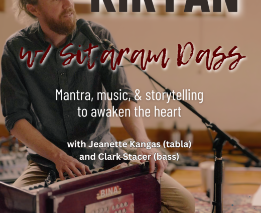 $25Come together in community through mantra, music, and storytelling for a kirtan to awaken the heart. Led by Sitaram Dass with Jeanette Kangas on tabla and Clark Stacer on bass. $25 suggested donation, no one turned away for lack of funds.