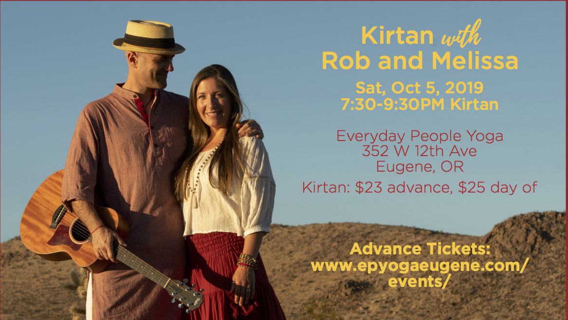Kirtan, call and response chanting, is the heartbeat of bhakti yoga, the yoga of devotion. Rob and Melissa’s kirtan is a fresh take on an ancient practice, where heart-filled songs blend…