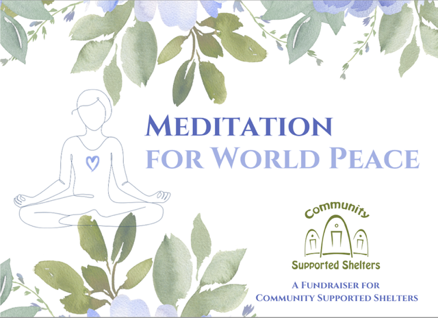 Meditation for World Peace: A Fundraiser for Community Supported Shelters . Led by Sarah Finney 7-8:30p Friday, May 8th $25 . An evening rooted in hope, community, and love. We’ll…